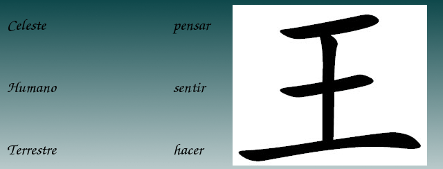 La coherencia del Emperador en el pensar, sentir y hacer, se representa de forma gráfica con el kanji Wang (el emperador):
